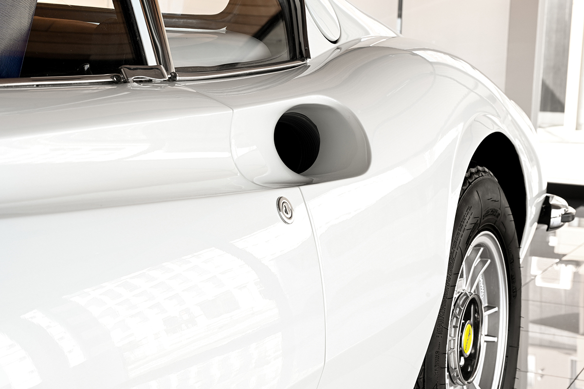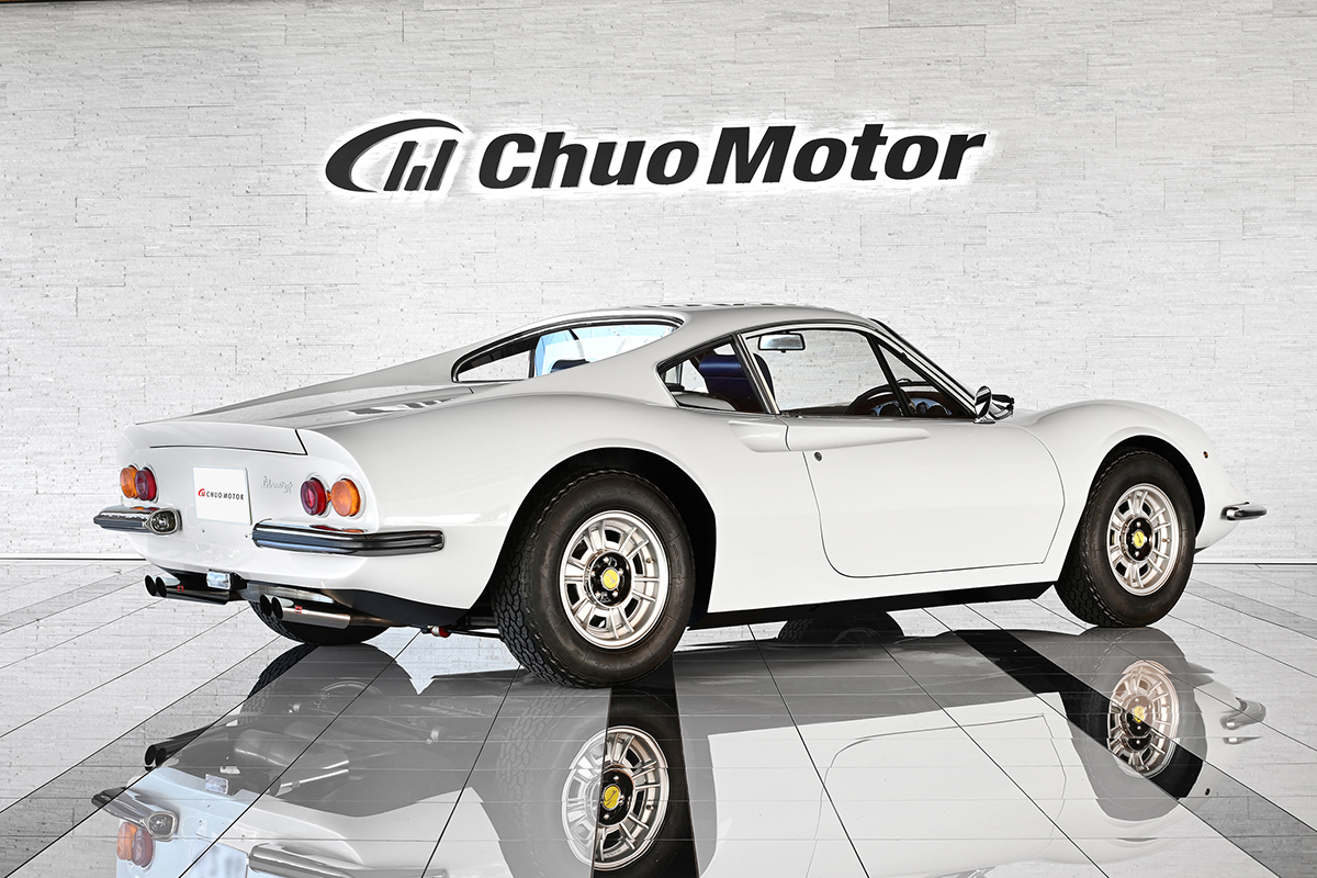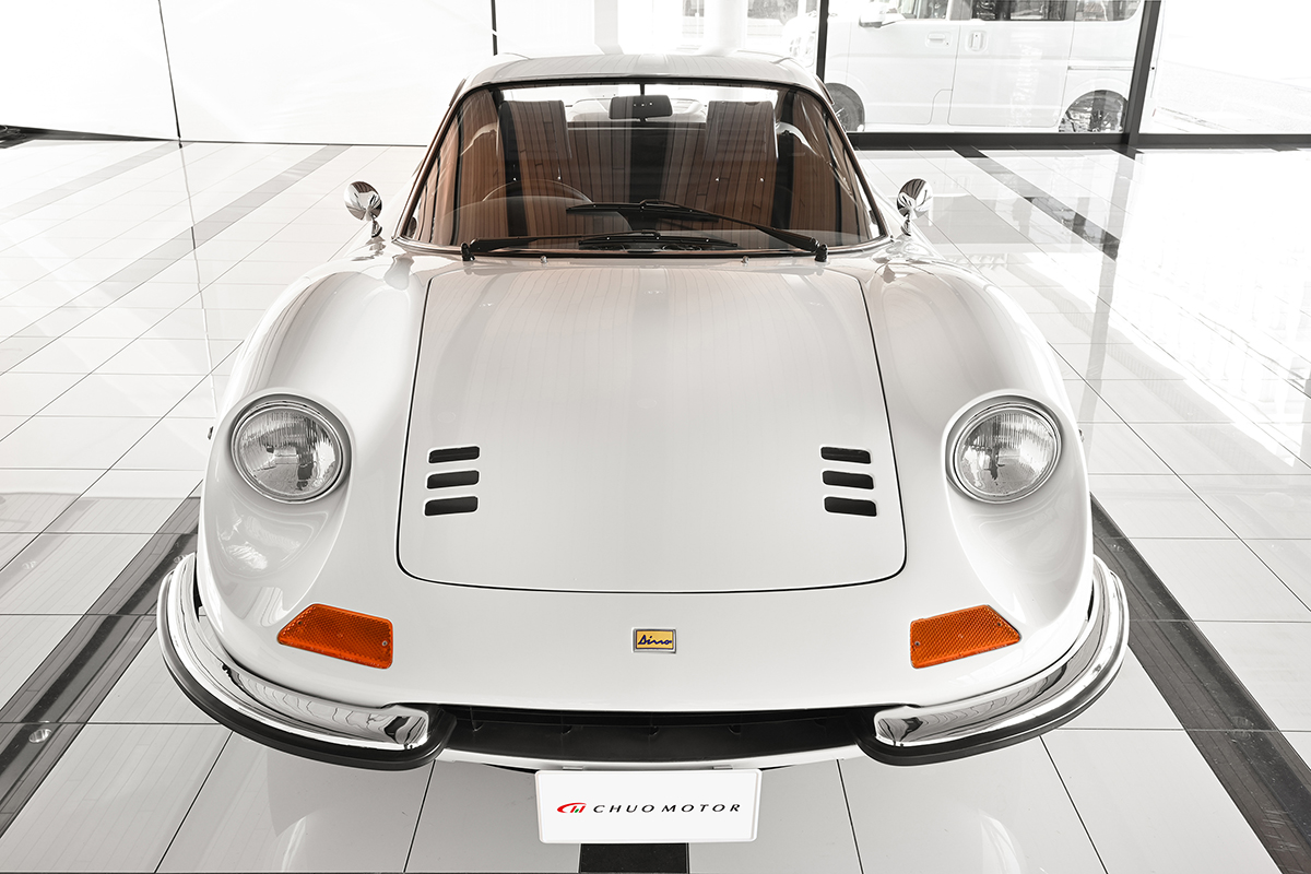 フェラーリの歴史の中で、その傑出した美しさから、走る宝石と称された”ディーノ”。数々のレースで培われた伝統のV6ユニットをドライバーの背後に搭載した、フェラーリ量産車初のミッドシップモデルです。エンツォの亡き息子の愛称であるディーノの名を冠したこのスポーツカーは、フェラーリ中期のマスターピースの一つに挙げられ、現在でも世界中のエンスージャストたちから愛されています。誕生した1968年から、年々改良を施しながらその生産台数を伸ばし、終了する1974年までに生産された台数は約5,200台と、フェラーリとしては異例の生産台数を記録しています。