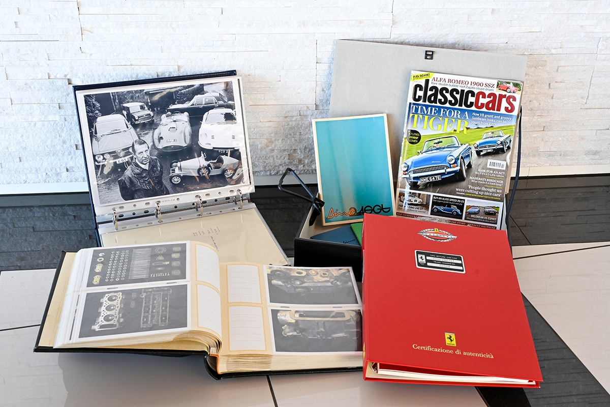 以上のエビデンスとしてFerrariファクトリーのビルドシートおよび、Maranello Concessionairesのドキュメントが付属されるとともに、ロブ・ウォーカーからフライホイルのリングギヤが欠けたとの指摘で初期クレーム修理を行った際のインヴォイスなど興味深いドキュメント類が多数残されています。